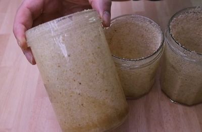 Durch das Bemehlen der Gläser stellst du sicher, dass du das Brot nach dem Einwecken leichter wieder aus den Gläsern nehmen kannst, ohne dass es zerfällt.
